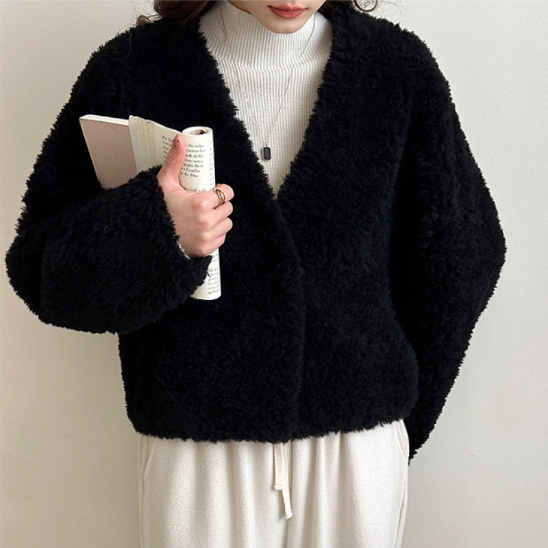 小香風の子羊の毛のコートの女性は秋冬に厚いです。