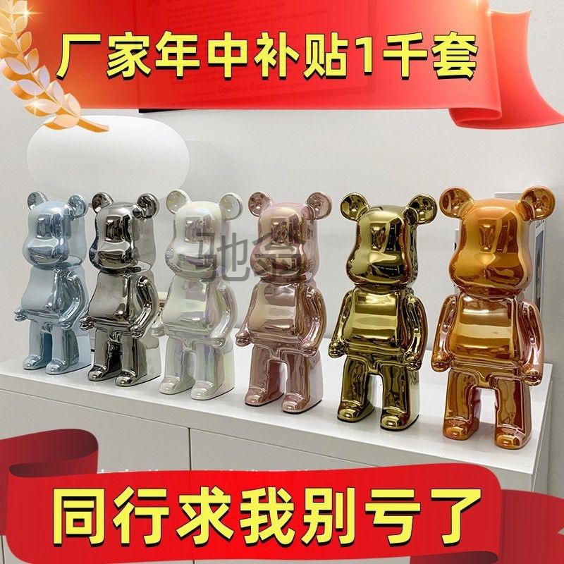 ネットの赤い暴力の熊の置物の陶磁器の電気めっきの貯金箱の北欧の潮は客間のテレビの棚の家庭の装飾品を遊びます。
