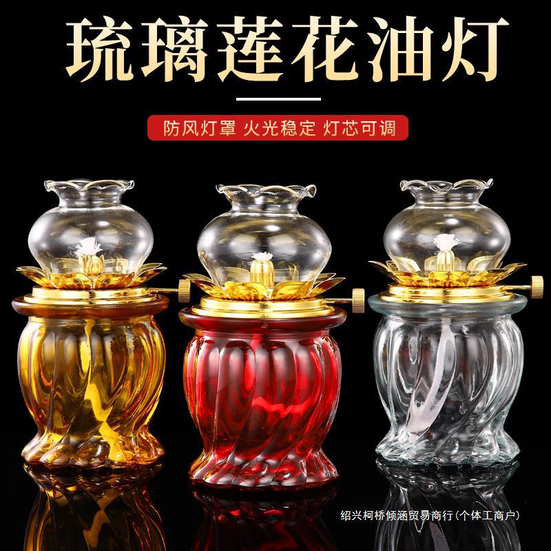 防風の七色の瑠璃のメレンゲの灯台の長い明かりの仏堂の蓮の灯の家庭の仏前は灯の蘇のランプを供えます。
