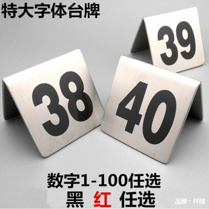 ステンレス台のナンバープレートのテーブルの上の赤い数字のレストランのブランドのテーブルのナンバープレートのナンバープレートはナンバープレートと言います。