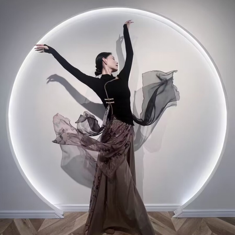 古典的なダンス服の女性の修身は秋冬の新型の中国風の長袖のダンスの練習の功服のダンスの公演服を漂っています。