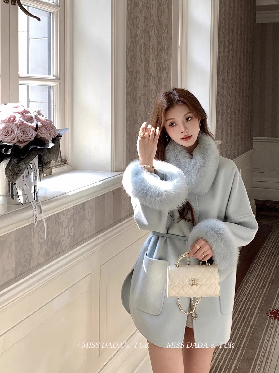 雪の精霊の乳のお姉さんのネットの赤い同型の両面のカシミヤのコートの女性の冬のキツネの毛の大きい毛の襟の毛の毛皮のコート