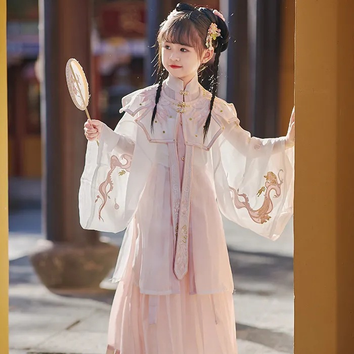 新品春夏改良汉服レディース子供服明制古风スーツ中国风児童汉服长袖云肩
