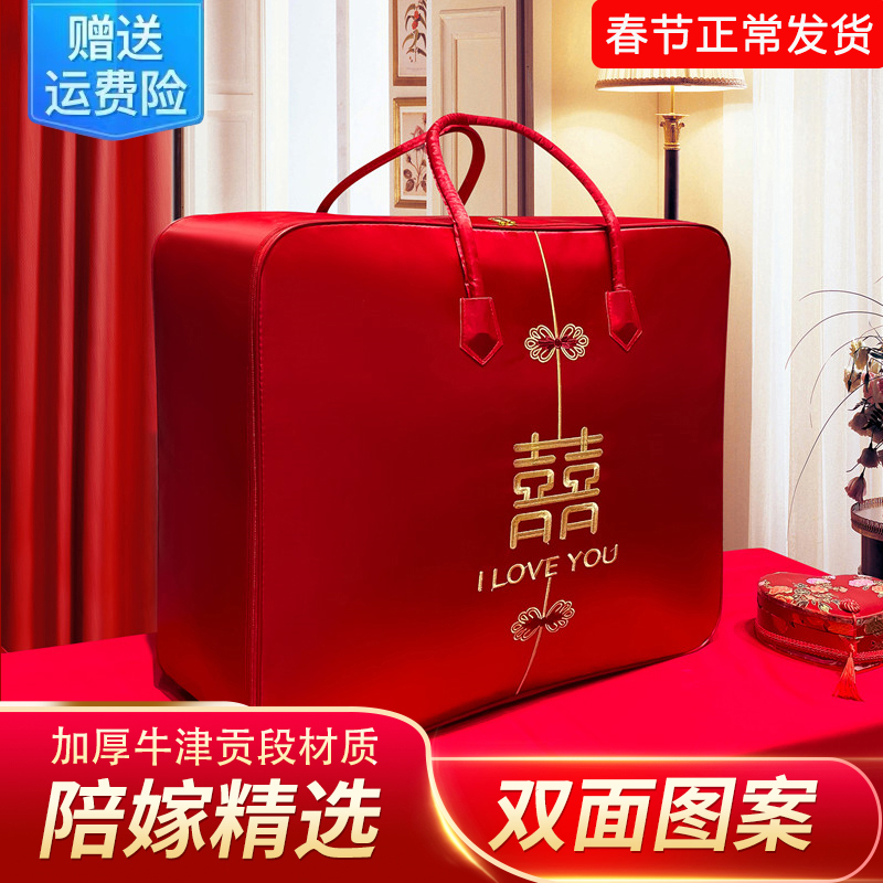 結婚のお嫁さんの収納袋の結婚祝いの四つのセットの赤い喜は布団の包装袋のサテンのオックスフォードのいっぱいを詰めます。