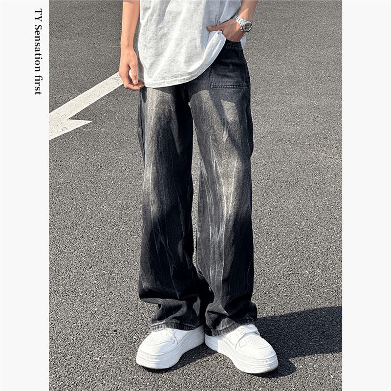 田野春秋四季街頭感百合水洗いレトロ直筒グラデーションジーンズ