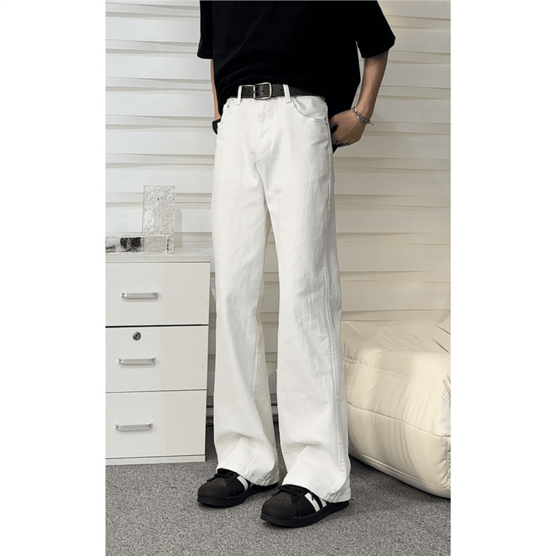 白い弾力感のある生地のマイクロラッパのジーパンの潮流のまっすぐな筒のゆったりしているズボンのカジュアルな大衆のズボン