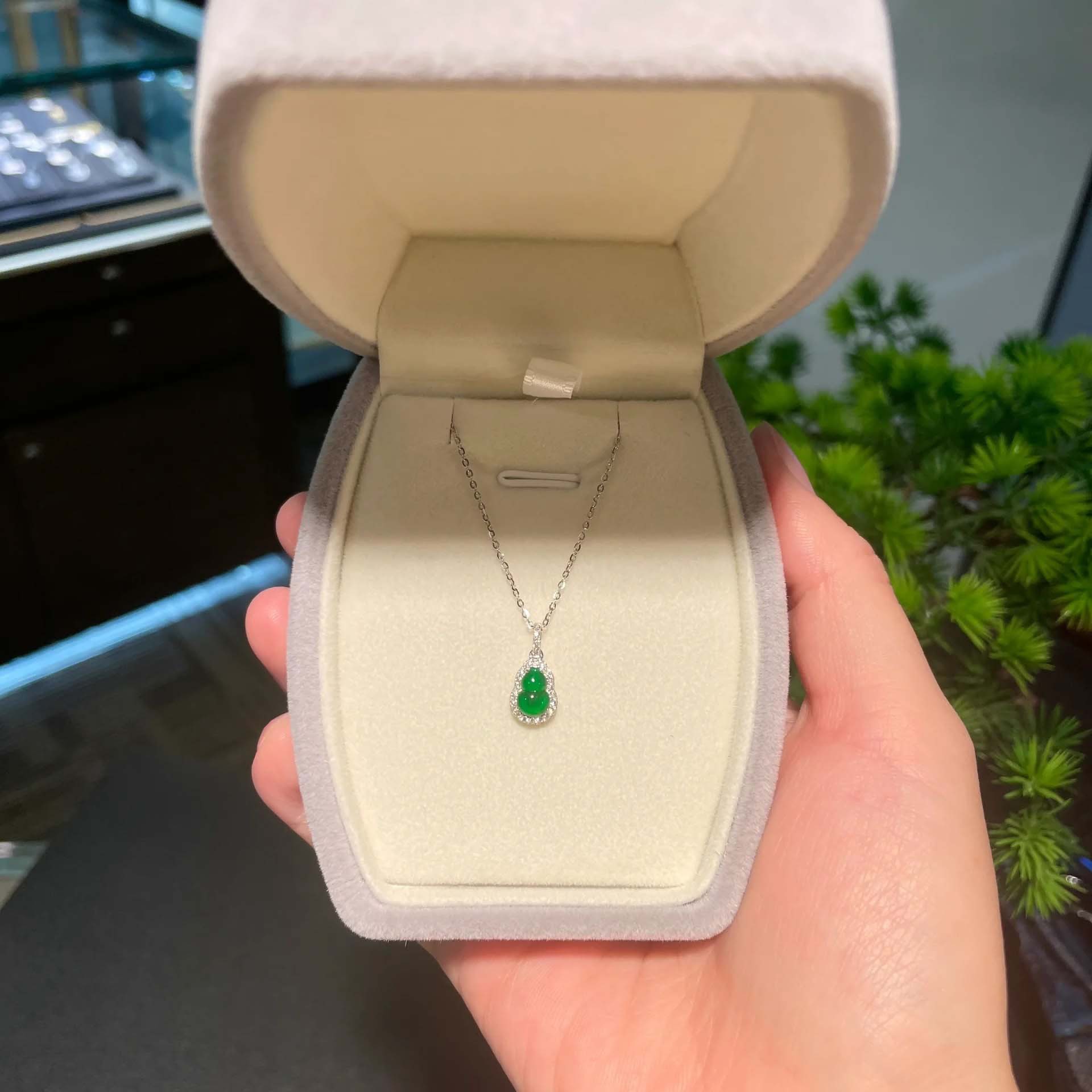 銀の帝王の緑の小さいヒョウタンのペンダントのネックレスの女性の新型の鎖の骨のチェーンの夏の軽い豪華な大衆