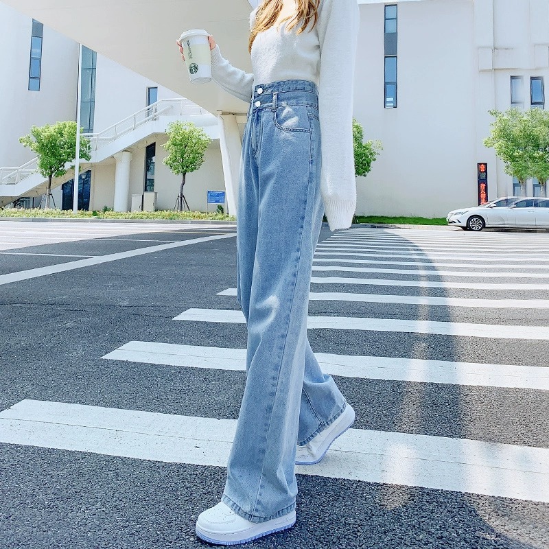 高腰の広脚のジーパンの女性の春と秋冬の春の新型のベルベットは厚くてゆったりしています。