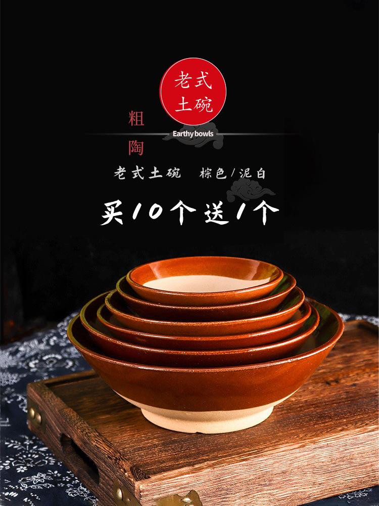 古いレトロな土碗の鍋の調味料の碗は蒸して白いボタンの肉の蒸し料理の酒の碗の粗い陶器の碗の土陶のシンプルな食器を焼きます。