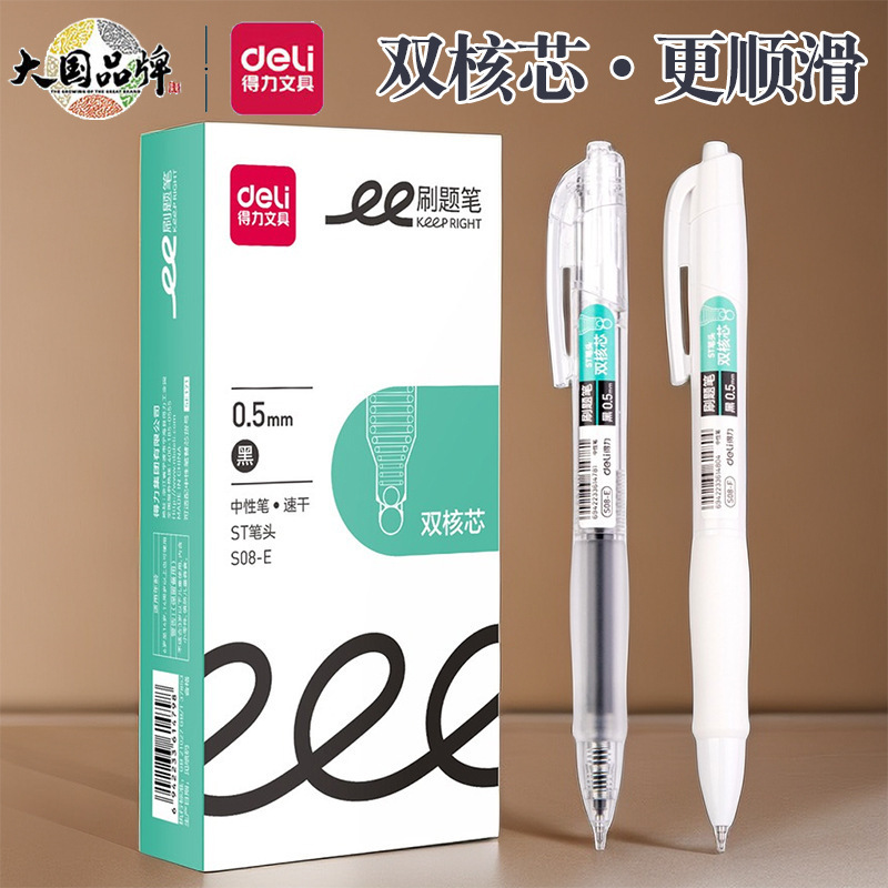 有力s08中性ペンは高颜値0.5黒色プラスチックサインペン学生ブラシ問題文房具用品を押す