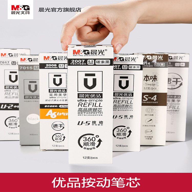 Chenguang Stationery プレミアムゲルペンリフィル 0.5 ミリメートル弾丸ヘッド大容量プレスペン速乾性リフィル 12 個