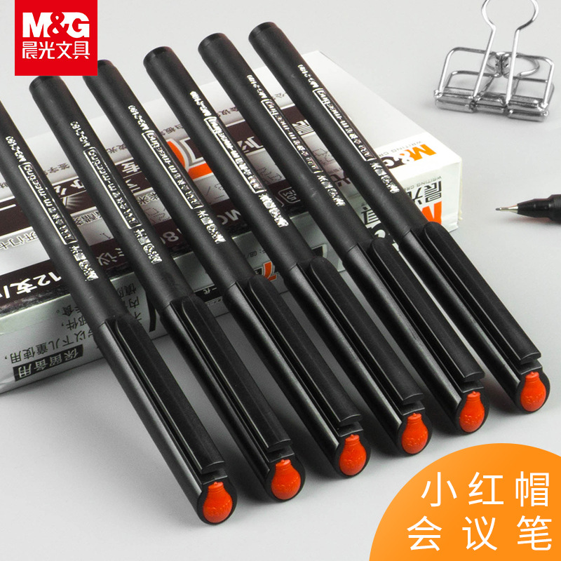 晨光中性笔小红帽0.5mm全针管签字笔学生考试办公会议笔MG2180