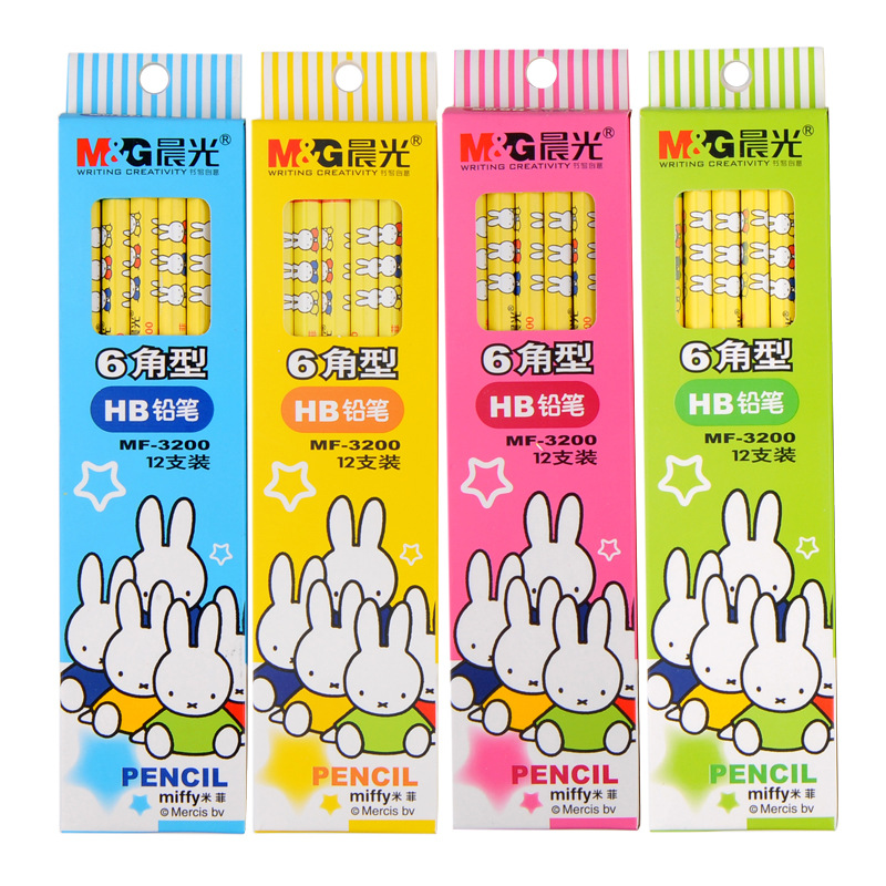 モーニングライト文具 ミッフィー 木製鉛筆 HB 六角型 芯が折れにくい 木製鉛筆 漫画 ミッフィー 12本入り鉛筆