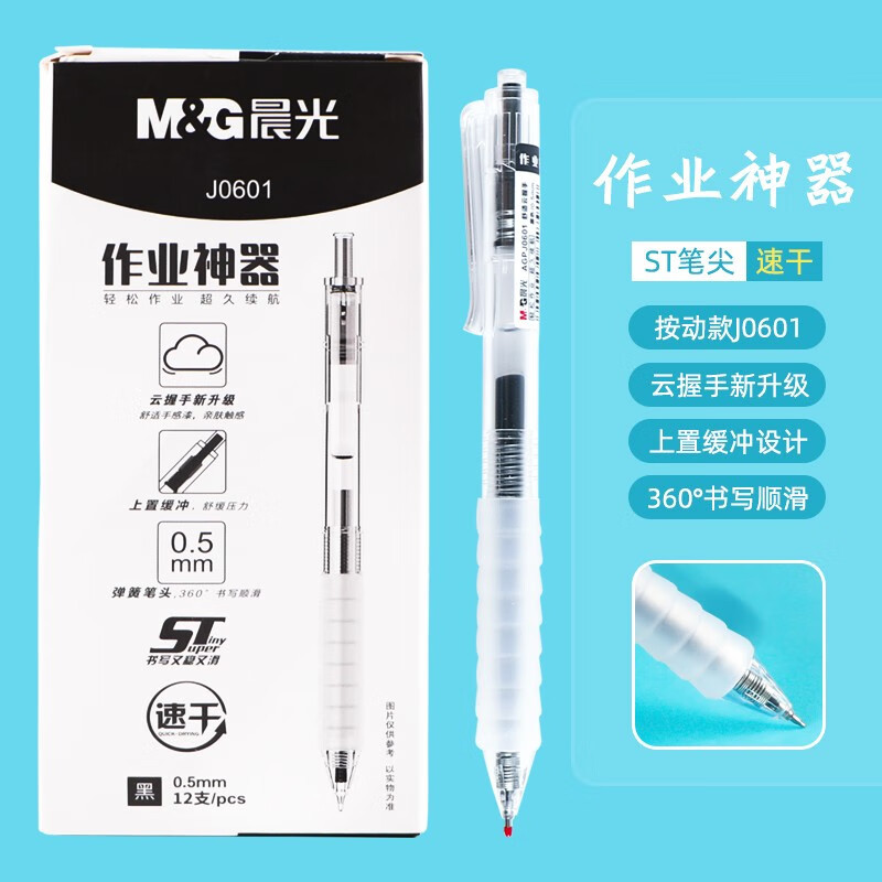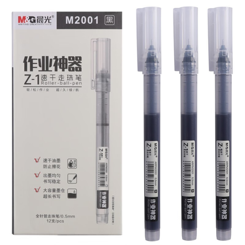 朝光大容量速乾珠ブラシ問題ペン0.5mm全針管巨能写中性筆黒青紅水筆M