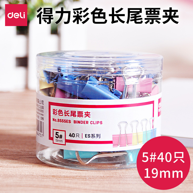 得力8555esロングテールクリップカラー19mm札入れ金属アリクリップ札入れクリップファイル40枚入