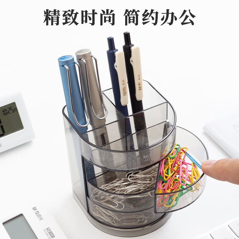 M&G 文具透明三層ファッションペンホルダー多機能オフィスデスクトップ収納ボックス ABT98443