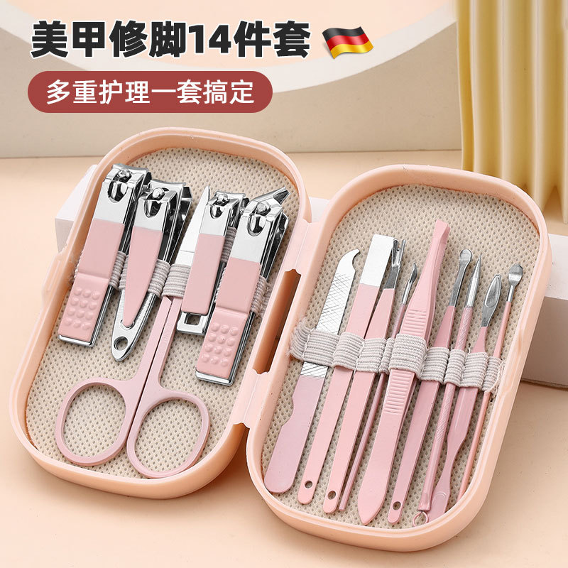ステンレス爪切り14点セット家庭用ネイルマニキュア専用爪切り耳スプーン粉刺針セット爪切り
