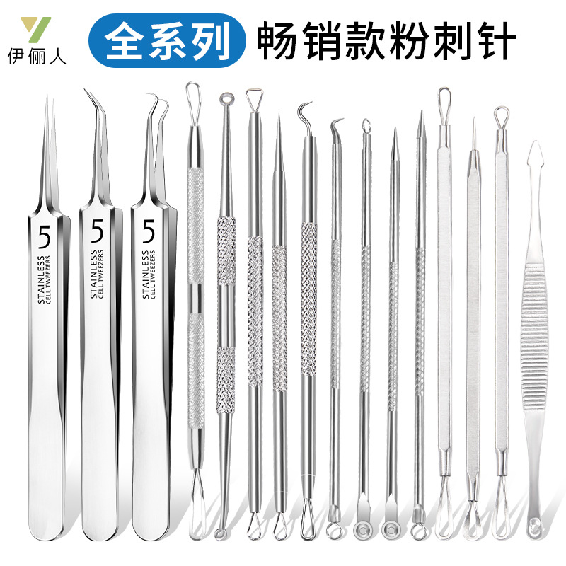 細胞クリップ超尖5号ステンレス粉刺クリップ黒頭ピンセットを選んでニキビ脂肪粒粉刺針セットを外します。