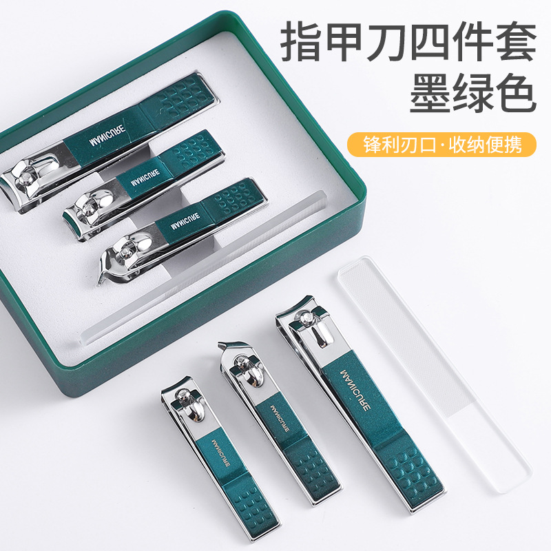 ダークグリーン 4 ピース爪切りセットドイツ飛沫防止家庭用爪切りマニキュアツールメーカーのカスタマイズ