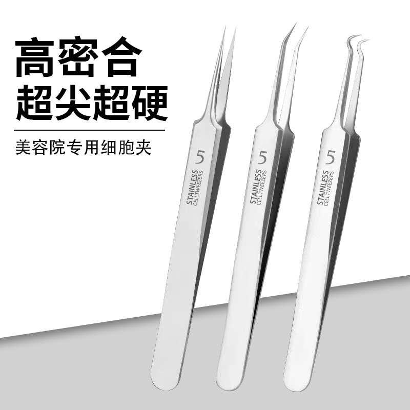 ステンレス粉刺クリップ5号超尖細胞クリップ黒頭押痘ピンセット粉刺針美容美化粧ツール