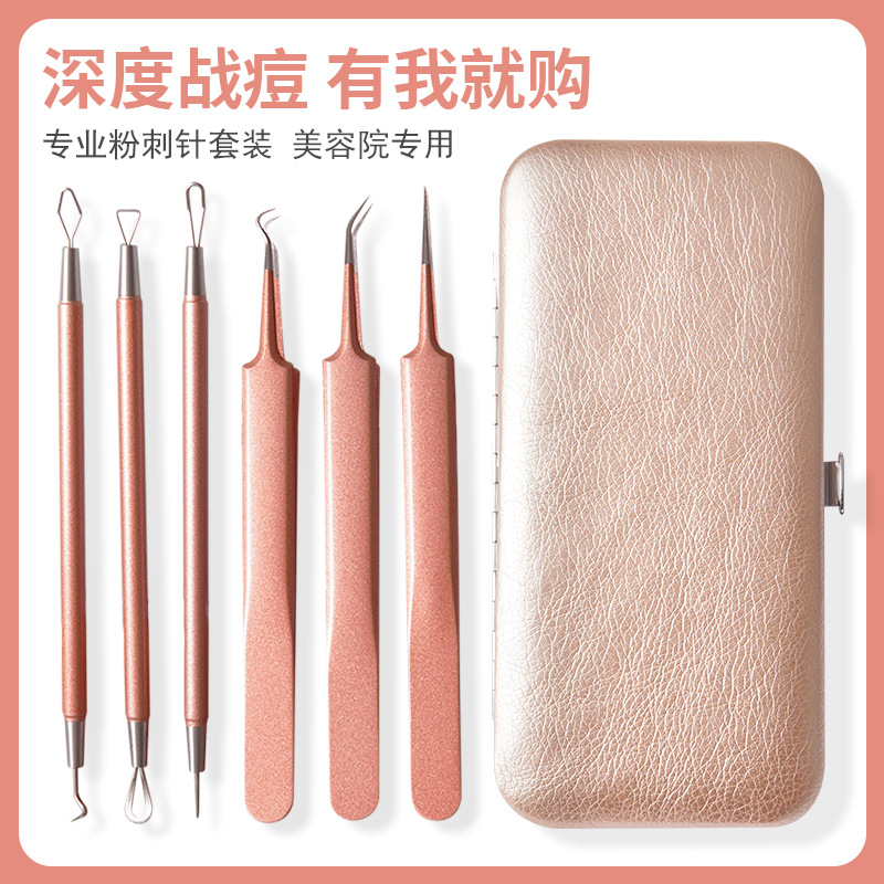 カスタマイズされたバラ金粉刺針6点セット細胞クリップ暗瘡針黒頭クリップステンレス美容工具セット