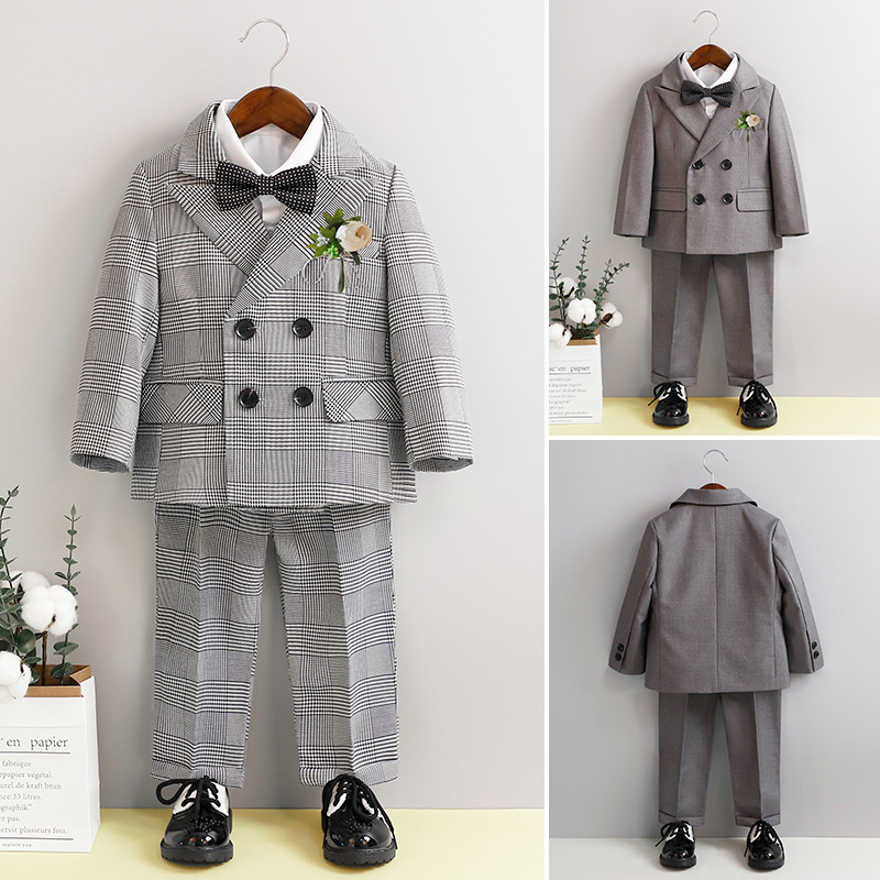 子供のスーツのドレス秋冬の韓国版のかっこいい格子の小さいスーツのスーツの赤ちゃんの1歳の誕生日の写真服のメーカー