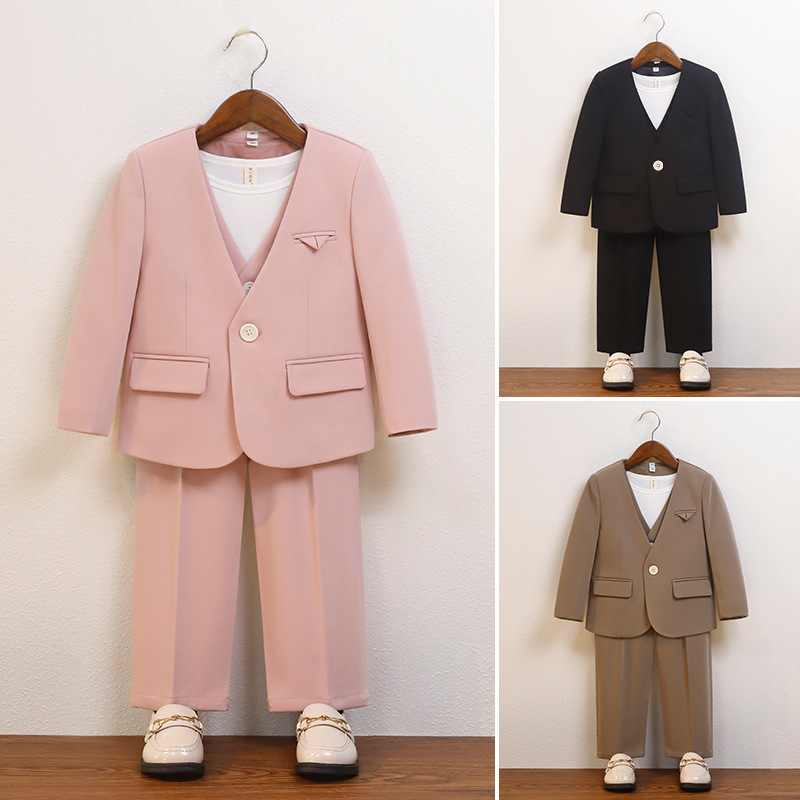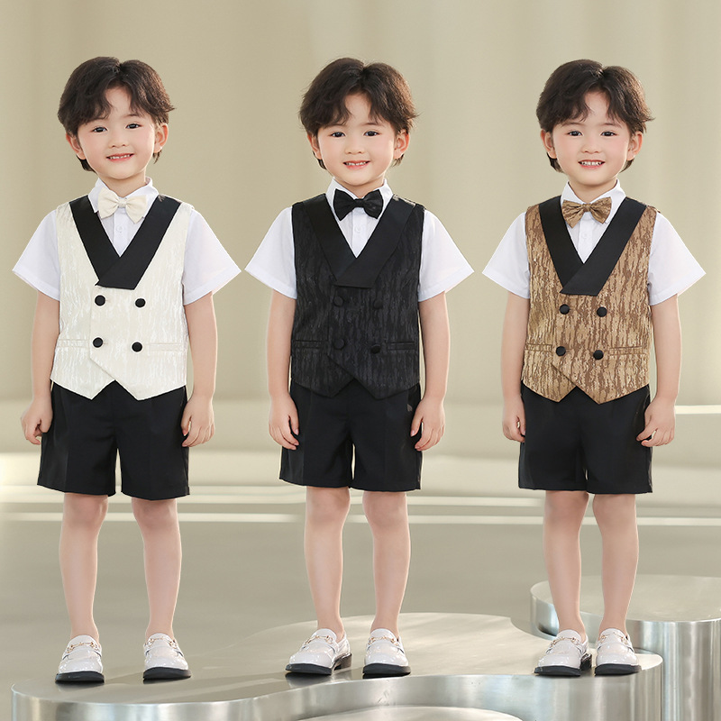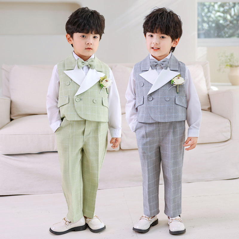 子供用スーツ春夏新作英倫馬甲セット男の子司会演出撮影服子供用花童ウェディングドレス