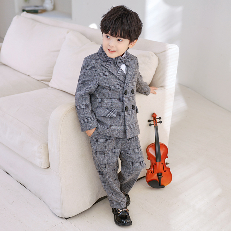 男の子のスーツのドレスの秋の新型の英倫紳士のスーツのスーツのスーツの中で子供の満1歳のピアノの司会の公演服