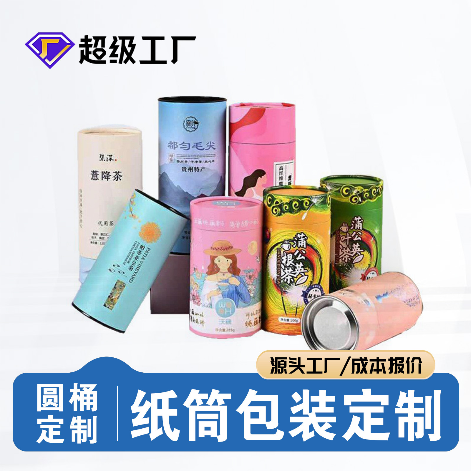 円筒紙缶カスタム円筒包装紙バレルカスタム茶紙管クラフト紙食品包装紙バレルカラー印刷