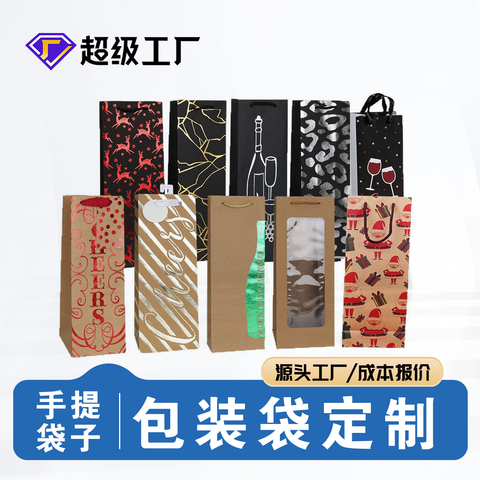 紙袋カスタマイズシルバー段ボールカラー印刷ハイエンド赤ワインギフトバッグシングルダブルハンドバッグクリスマスギフトバッグカスタマイズ