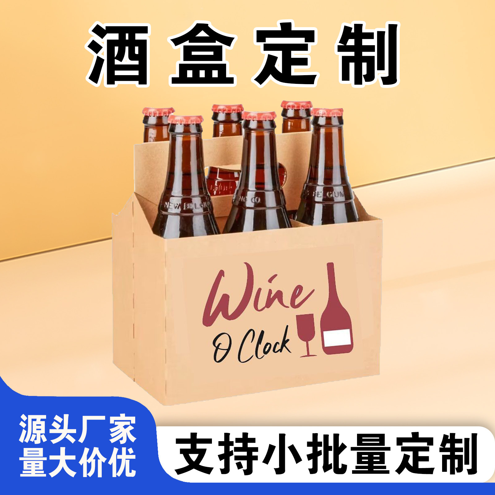 ビール携帯用包装箱 カスタム6本入り蓋なし紙箱 ギフトボックス カスタムメイド 飲料用段ボール牛革紙