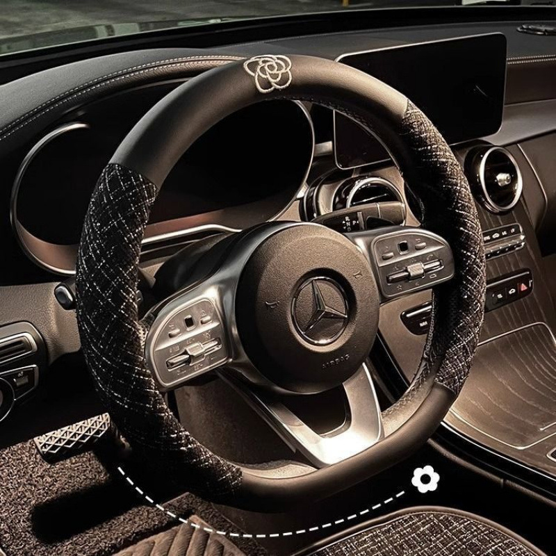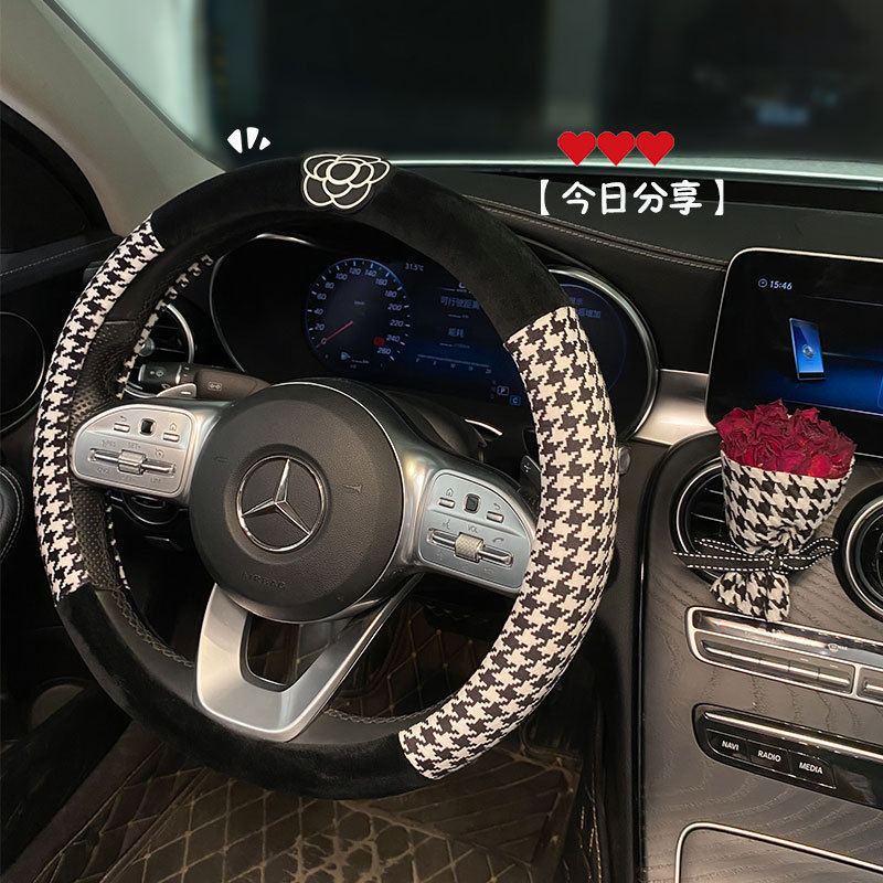 新型車のハンドルカバー四季通用女性滑り止め吸汗小香風山茶花男女通用車ハンドルカバー