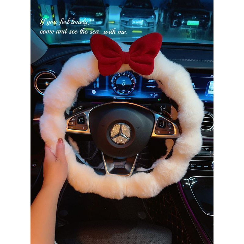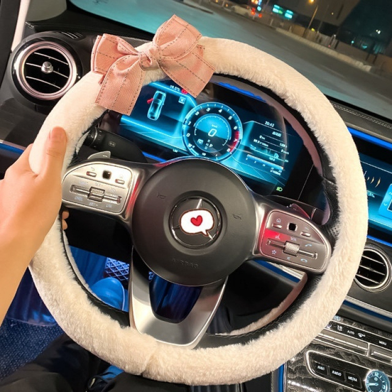 車のハンドルカバーの冬の保温のぬいぐるみの蝶結びのカバーのかわいい女神の滑り止めの冬の保護カバーは通用します。