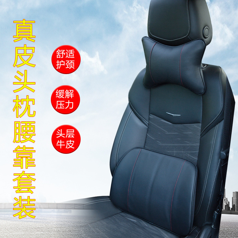 車の本革の記憶綿の腰はヘッドレストの車用のクッションの腰のクッションの四季の車用の首の枕の腰の枕のセットです。