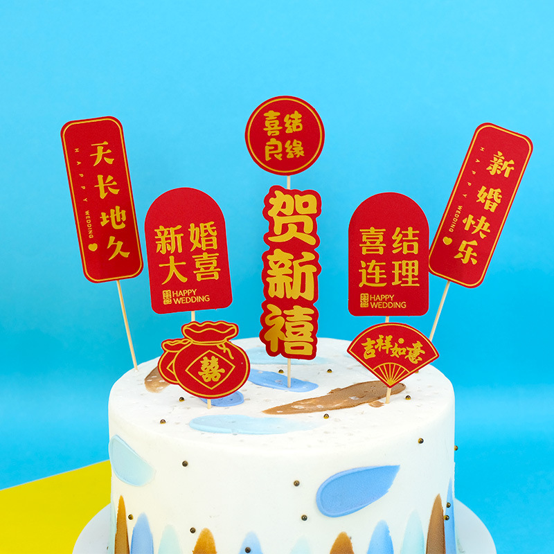 新商品の婚約祝いデザート台結婚の金箔ケーキの挿し木の置物円喜の挿し木の双喜の装飾の挿し木