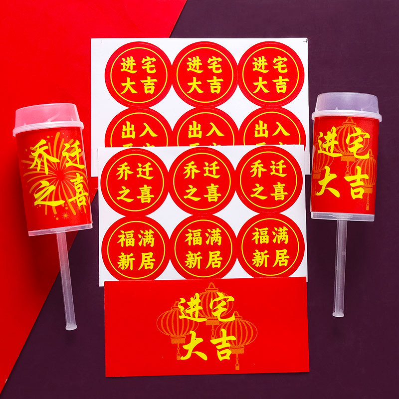 新築祝いのケーキデコレーション、新居入居プッシュステッカー、引っ越しの縁起の良い赤い紙コップインサート
