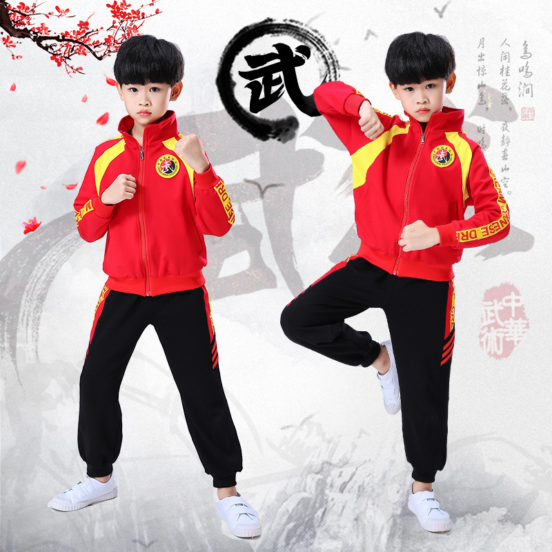 子供武術服男女四面弾練習服武館服長袖太極トレーニング服学生練習服