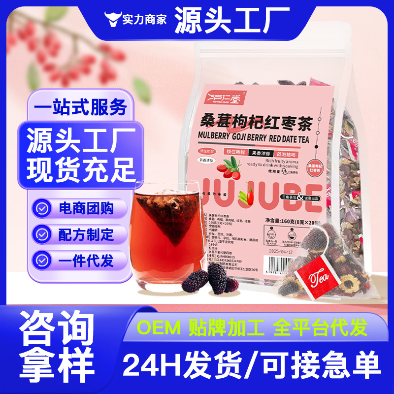桑の実、クコ、赤いナツメヤシ、黒クコ茶、夜更かし回復組み合わせ、男性と女性の健康茶、Douyin Kuaishou、ドロップシッピング