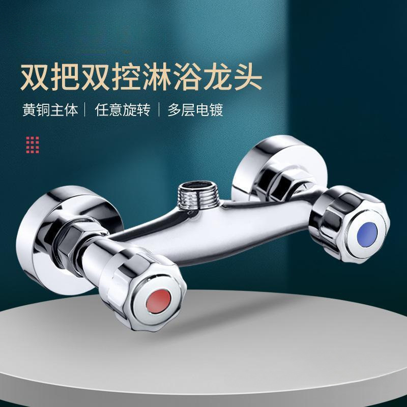 ダブルスイッチシャワーの蛇口の浴室の浴槽の蛇口の冷熱の精銅のダブルハンドルのダブルコントロールは壁式の混水弁に入ります。