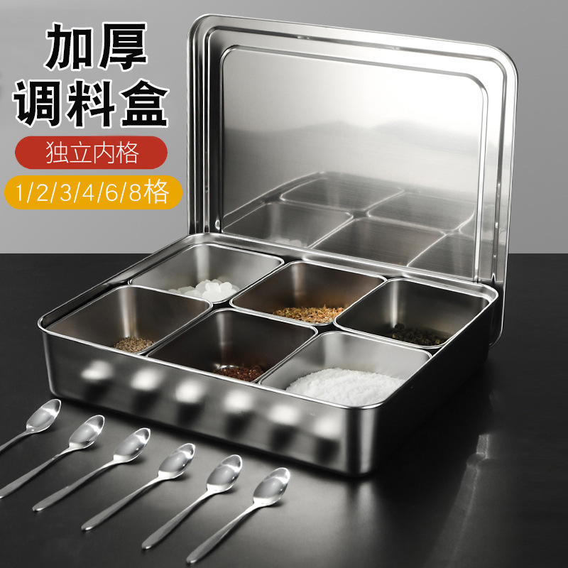 ステンレス調味料箱ティラミス氷粉料理具箱分格塩缶キッチン調味料箱セット蓋付き