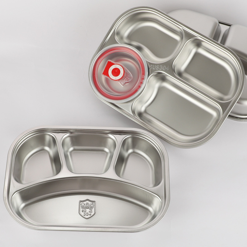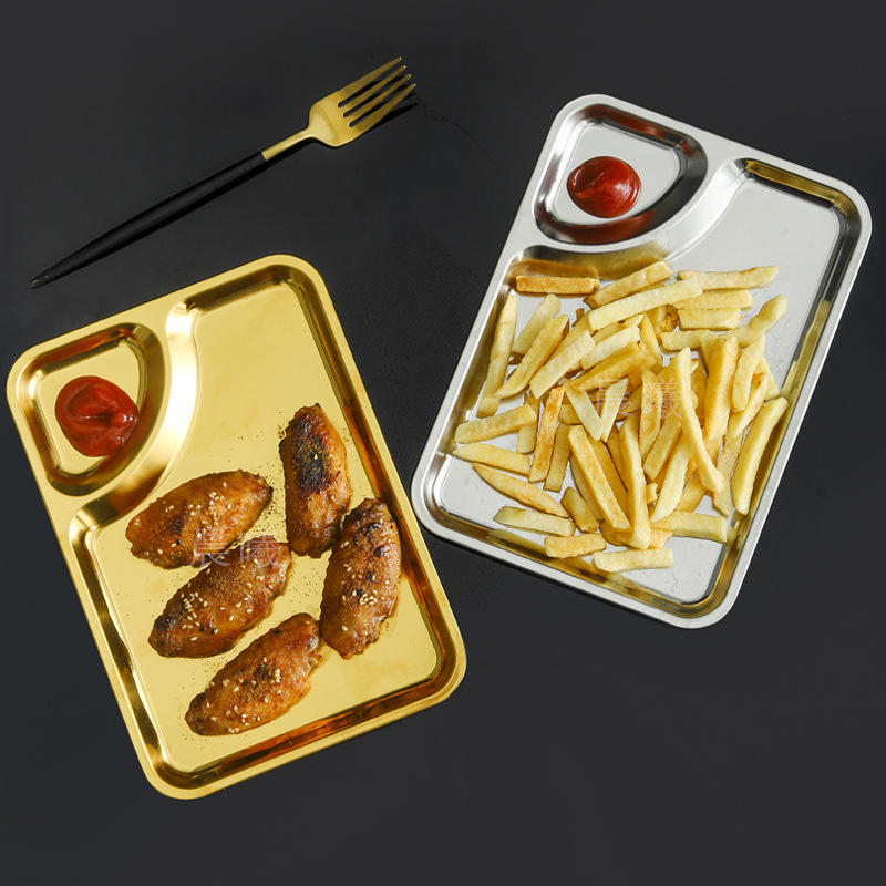 304ステンレス分食皿分隔盤食堂幼稚園児童分格ファストフード皿三格四格