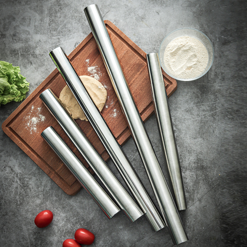 304ステンレスのめん棒を卸売りして、めん棒の小麦粉の棒を押します。