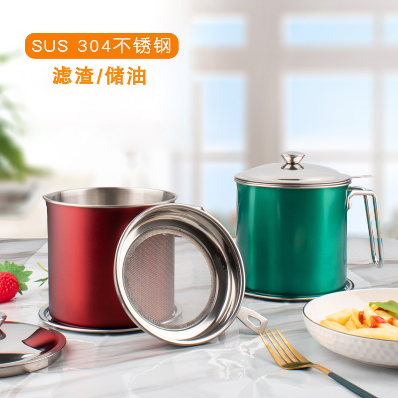 厚さ304ステンレス油ポット油貯蔵ろ過油カップ蓋付き網篩ろ過スラグキッチン油貯蔵タンク油瓶1.3l