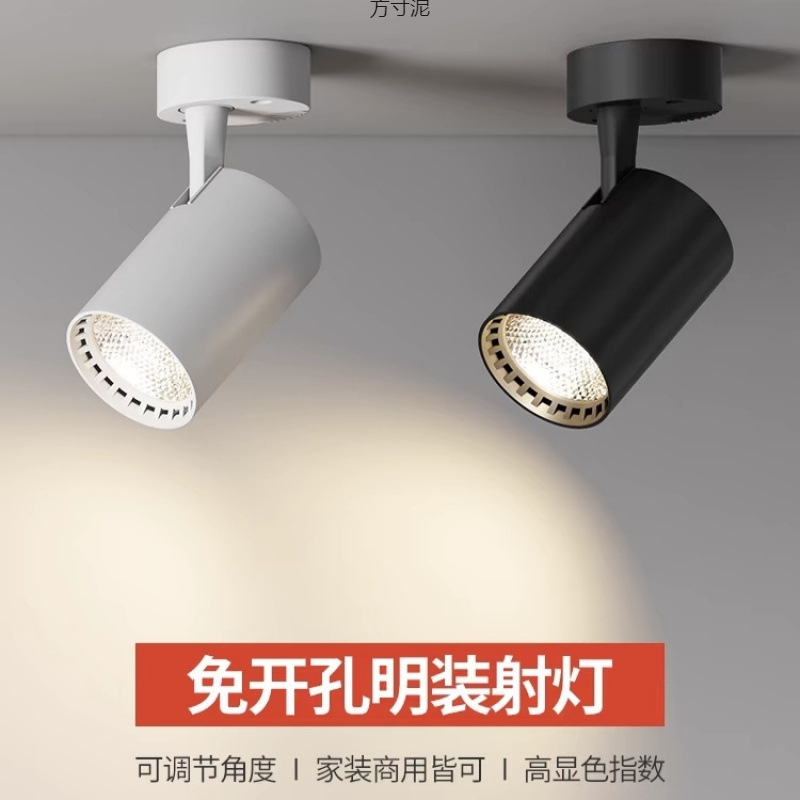 表面実装型LEDスポットライト、天井取り付け型、穴あけ不要、角度調整可能、超高輝度防眩COBスポットライト、店舗専用単灯工場