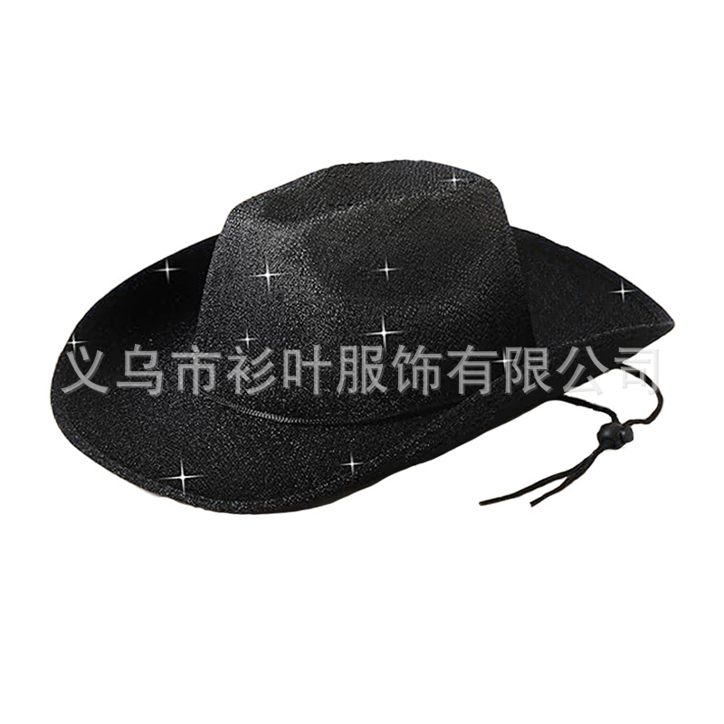 ブラックグリッターロープバックルカウボーイハット ウエスタンカウボーイグリッターゴールドパウダーカウボーイハット ハロウィンコンポジットグリッターブラックカウボーイハット