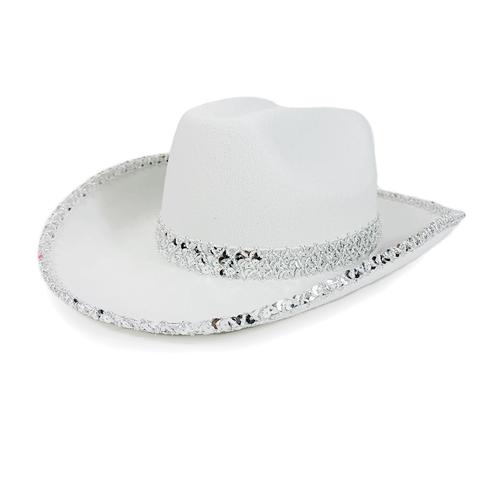 スポットホワイトダブルレースカウボーイハットシルバーエッジウエスタンカウボーイハットカーニバルパーティーシルバーエッジスタイリングハット