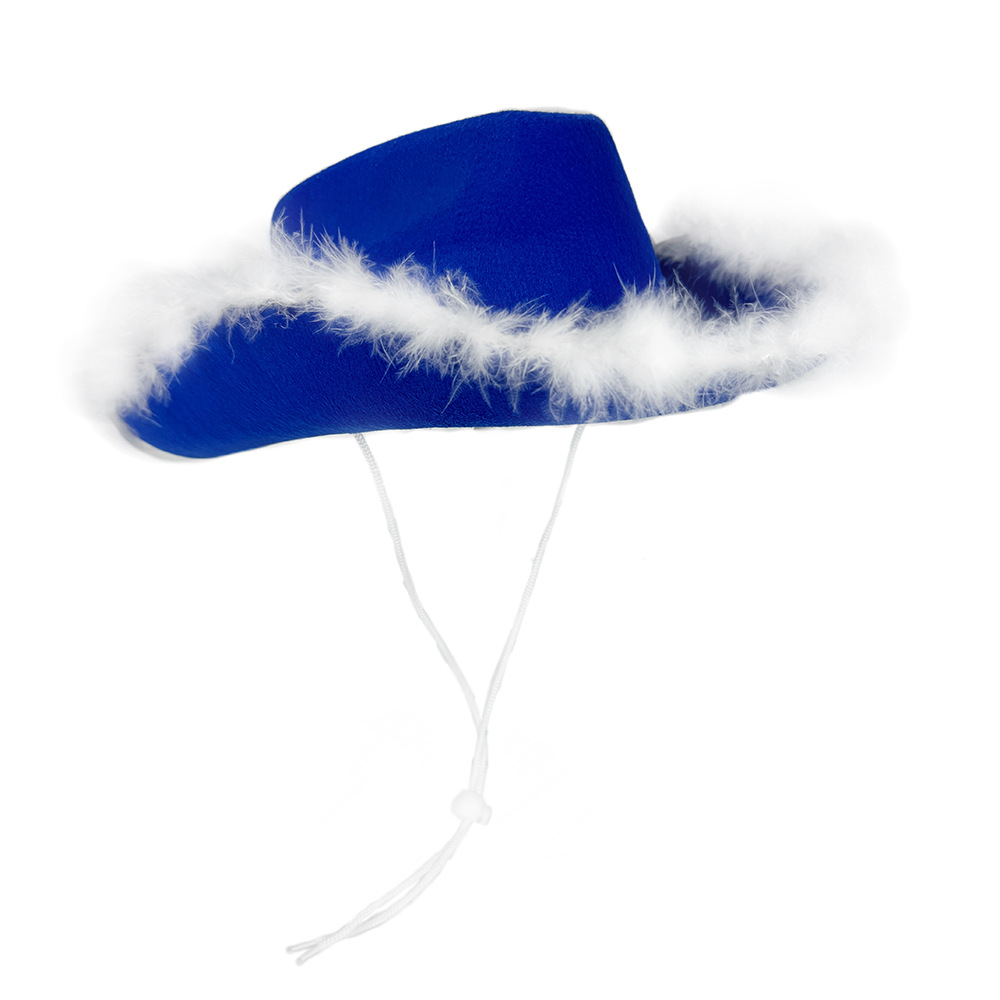 在庫あり サファイアブルー ローエッジ カウボーイ ハット ホワイト ヘア ウエスタン カウボーイ ハット ブルー ローエッジ ガールズ フェザー カウボーイ ハット