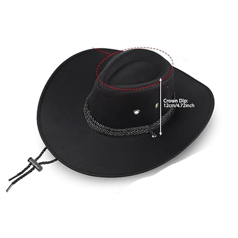 スポットブラックウエスタンスエードロープカウボーイハットブラック闘牛士大きなつば帽子ビーチサンハット