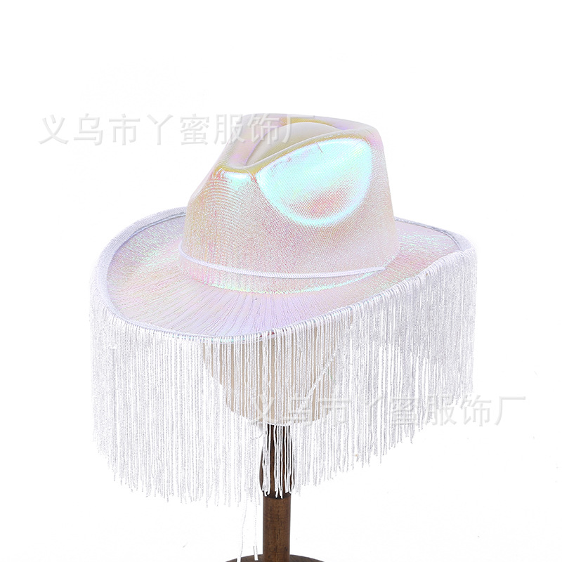 スポットカラフルなタッセル真珠光沢のあるカウボーイハットハロウィンカーニバルパーティーピンクカラフルなタッセル蛍光カウボーイハット