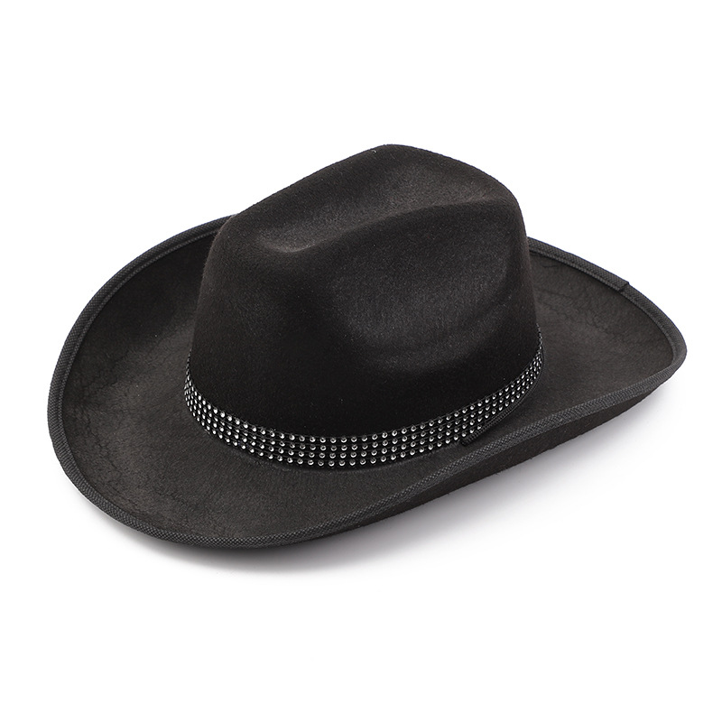 ダイヤモンド縁取り付きブラックカウボーイハット、ホワイトウエスタン4層ダイヤモンドパフォーマンスカウボーイハット